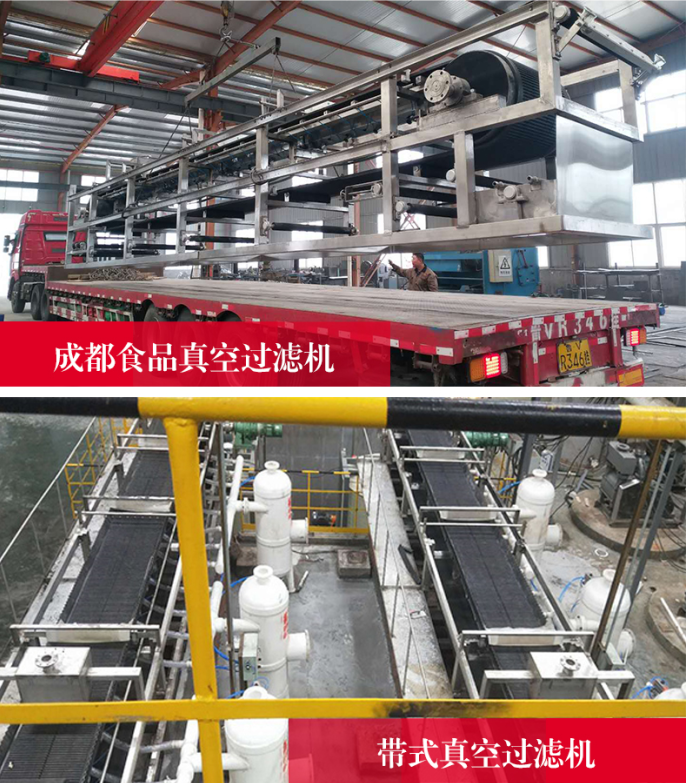 该设备采用了固定真空盒,胶带在真空盒上滑动,真空盒与胶带间构成运动密封的结构型式。它能连续自动完成过滤、滤饼洗涤、卸渣、滤布再生等工艺操作,并且母液与滤饼洗涤液可以分段收集。具有过滤效率高、生产能力大、洗涤效率好,滤饼水分低、操作灵活、维护简单等优点。胶带机经我厂多年改进和完善,产品的技术性能和质量已达到了国际先进水平,已广泛应用于冶金、矿山、化工、电厂湿法烟气脱硫、煤化工、造纸、食品、制药及环保等行业。
